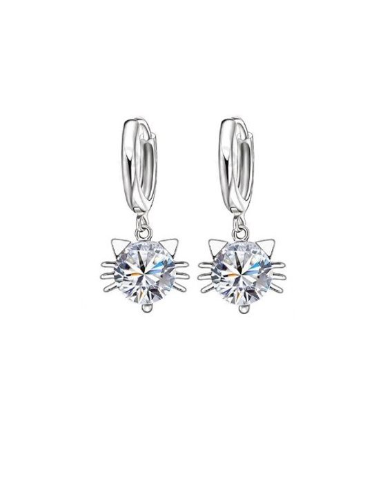 Fun, yet glamorous, these white gold vermeil cat-shaped earrings shimmer with light from each diamond-white, 1.3ct moissanite solitaire. Perfect for cat-lovers of all ages. Presented in a velour pouch keeping your jewellery safe and ready to wear or gift.