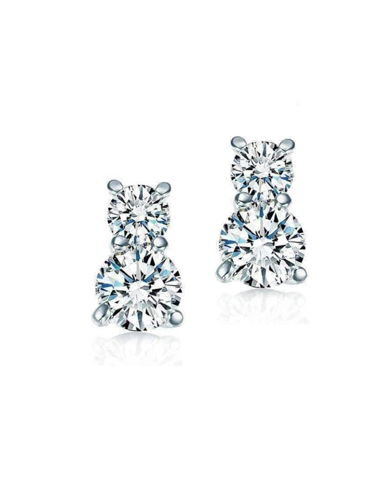 Add timeless elegance to your jewellery collection with these moissanite stud earrings. Each stud features a pair of brilliant-cut moissanites; known for its unmatched sparkle and fire, rivalling natural diamonds. Crafted from luxurious 18K white gold vermeil, these earrings are perfect for everyday wear. Presented in a velour pouch keeping your jewellery safe and ready to wear or gift.