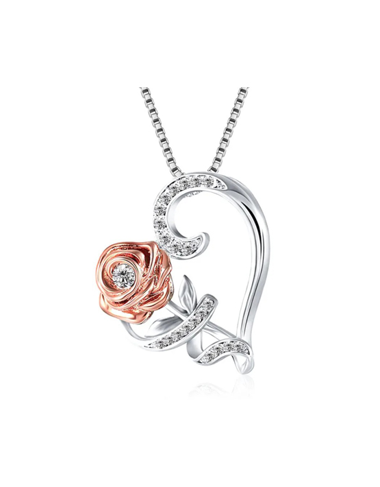 This pretty pendant, inspired by “Beauty & the Beast” features an enchanted rose entwined in a Rhinestone encrusted heart. Presented in a velour pouch keeping your jewellery safe and ready to wear or gift.