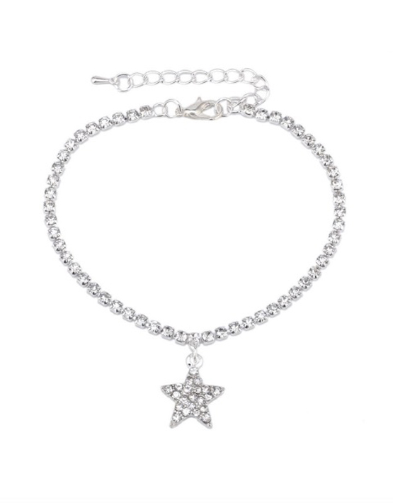 This lovely, white gold-plated anklet has a little star-shaped pendant and is encrusted with dozens of sparkling Austrian crystals. Presented in a velvet pouch, keeping your jewellery safe and ready to wear or gift.