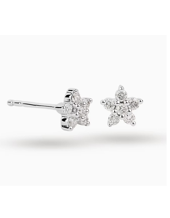 These cute little, white gold vermeil star-shaped earrings are inlaid with a total of 12 sparkling white sapphires. Presented in a velour pouch keeping your jewellery safe and ready to wear or gift.